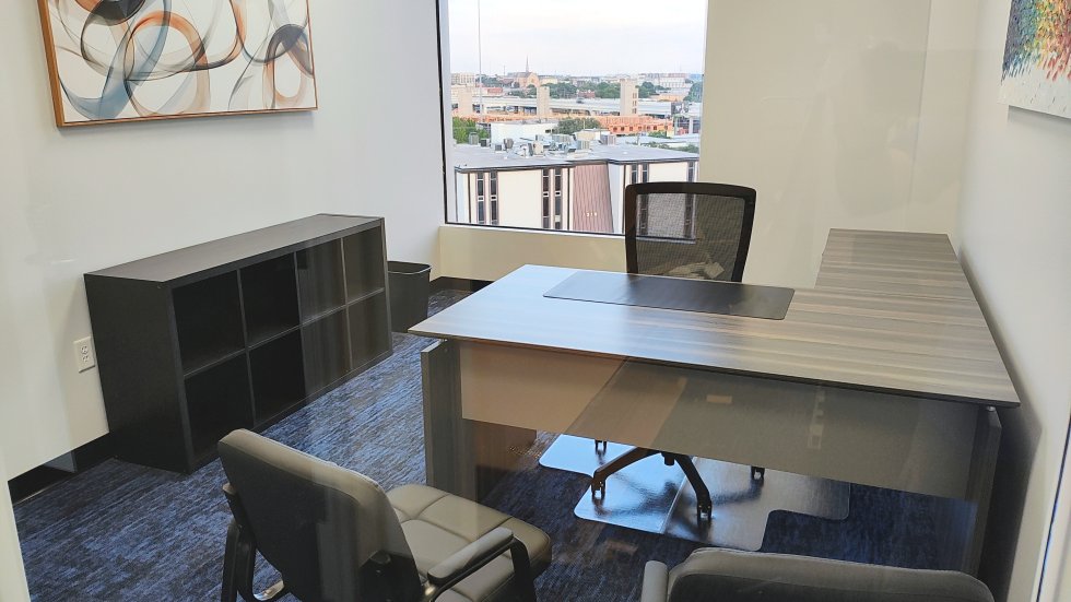 All offices are window offices and are furnished with: large desks ; executive chair; two guest chairs; locking file cabinet; book shelf; chair mat; and power strip; and WiFi and ethernet port access.